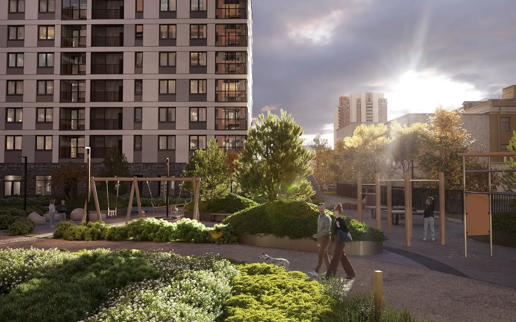 В продаже — квартиры с террасами, эркерами, угловыми окнами и французскими балконами. Благодаря невысокой застройке района с верхних этажей открываются виды на зелёные дворы и крыши соседних домов. Наслаждайтесь городскими пейзажами, встречайте рассветы и провожайте закаты вместе с семьёй.