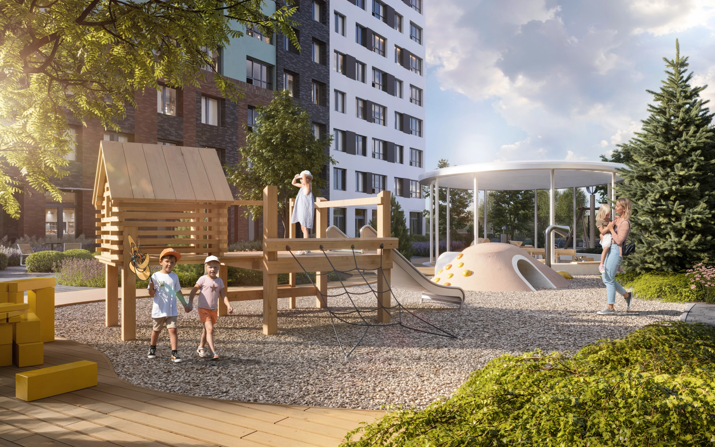На территории разбит фруктовый сад с лаунж-зоной. Общайтесь с соседями в комьюнити-беседке, загорайте на лежаках или занимайтесь йогой, наслаждаясь ароматами трав. Для любителей спорта оборудована воркаут-зона под открытым небом.