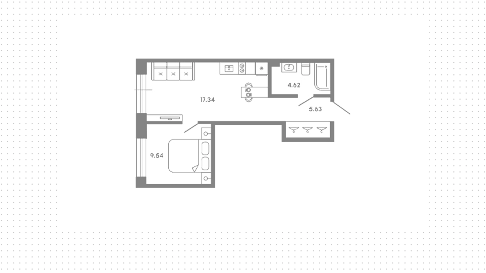 Квартиры c 1 спальней, 28 м² в ЖК 17/33, 2 этаж