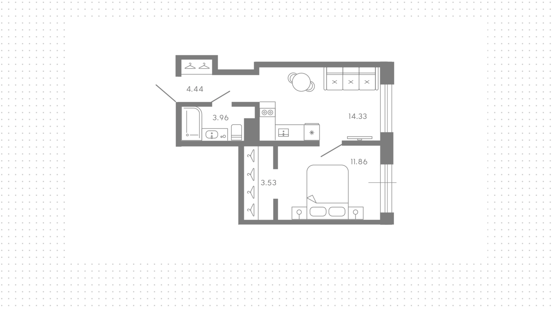 Квартиры c 1 спальней, 38 м² в ЖК 17/33, 4 этаж