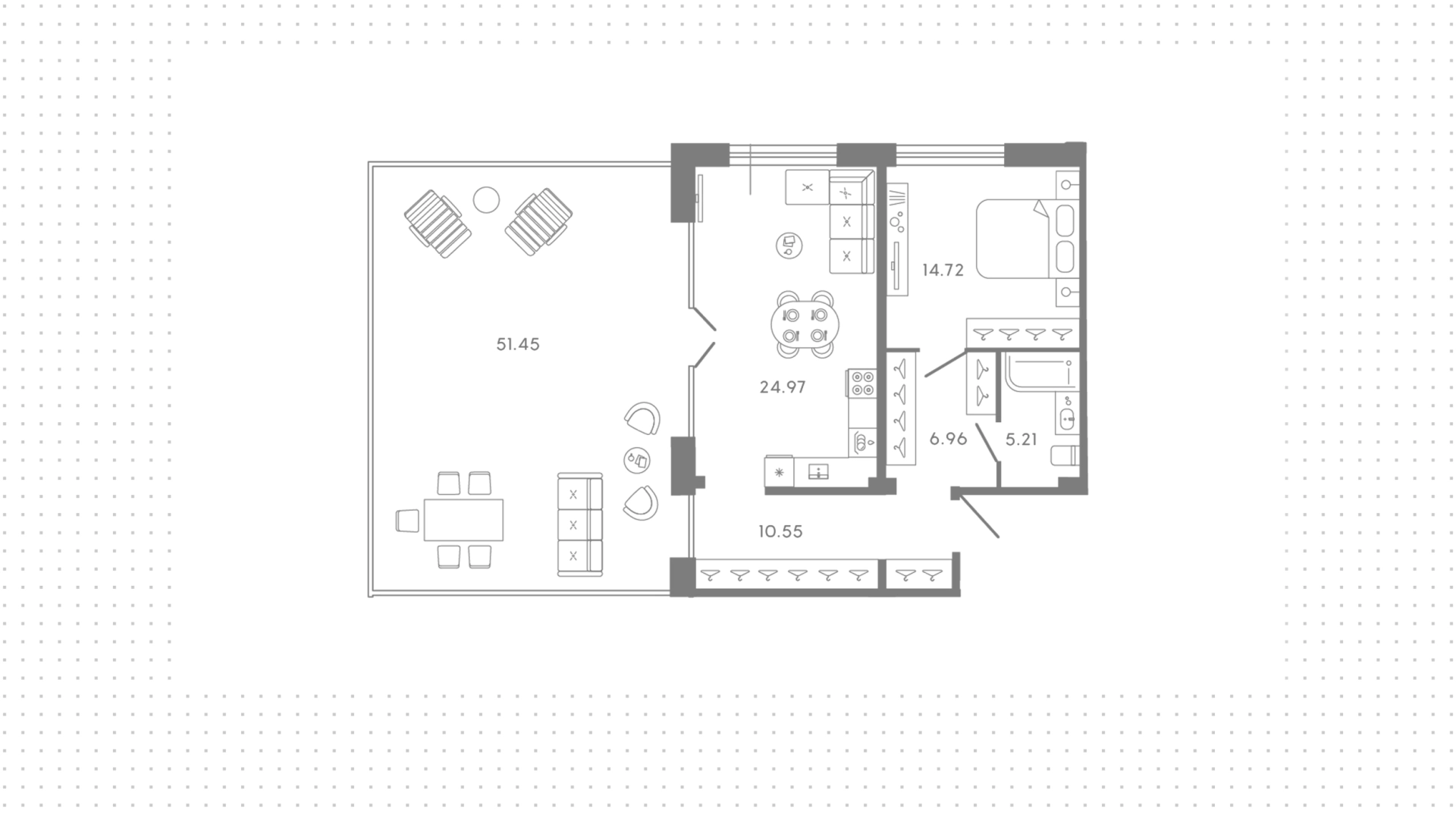 Квартиры c 1 спальней, 113 м² в ЖК 17/33, 6 этаж