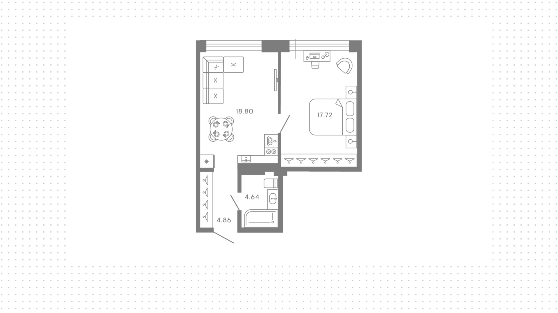 Квартиры c 1 спальней, 46 м² в ЖК 17/33, 7 этаж