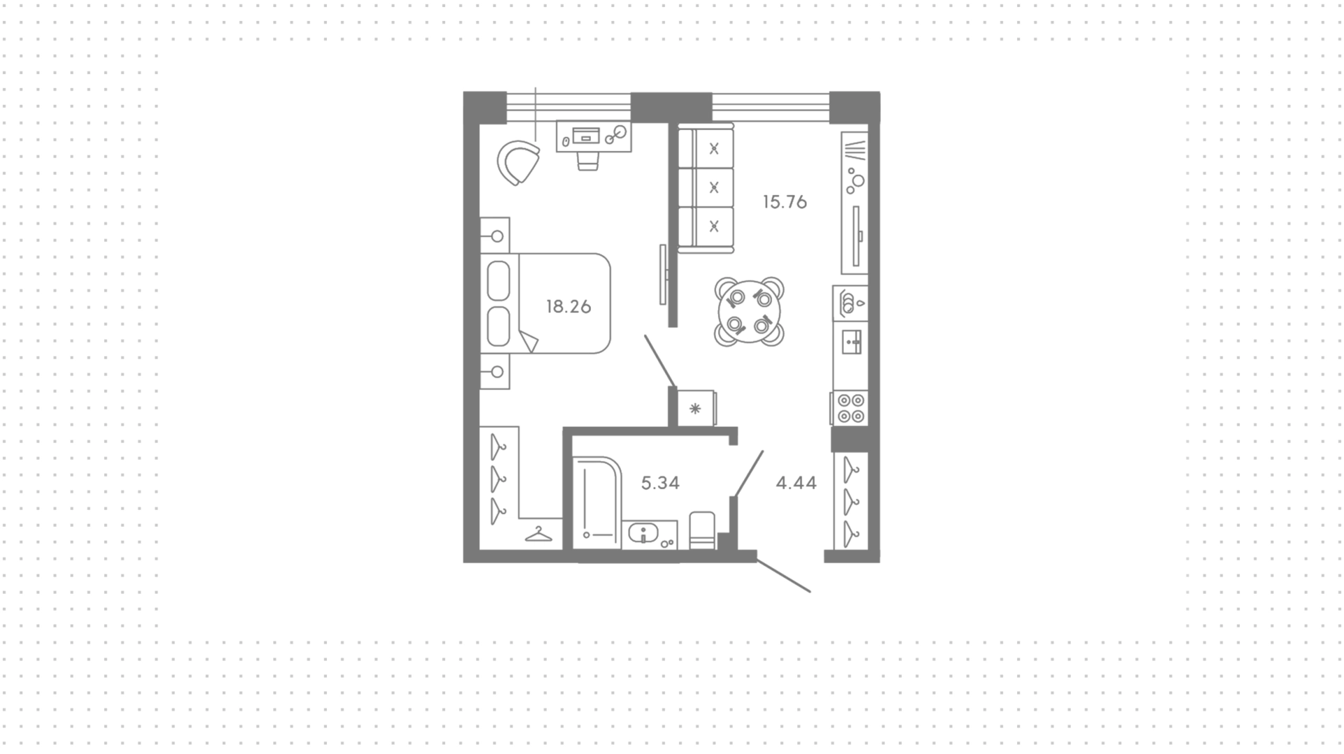 Квартиры c 1 спальней, 43 м² в ЖК 17/33, 3 этаж