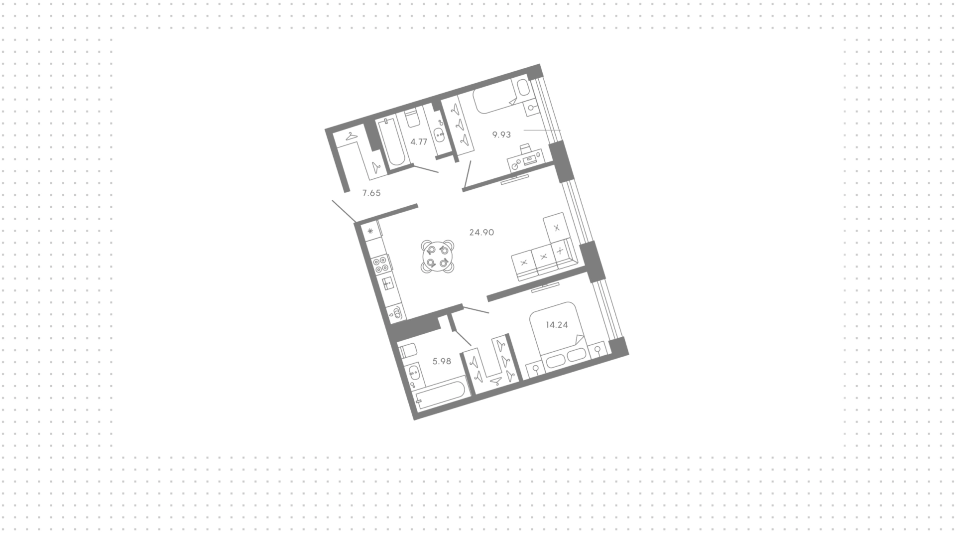 Премиальный жилой комплекс с элегантной архитектурой у слияния двух рек. Закрытый двор с детскими площадками, прогулочной набережной и обзорной площадкой, коммерческая инфраструктура и подземный паркинг на 704 места.