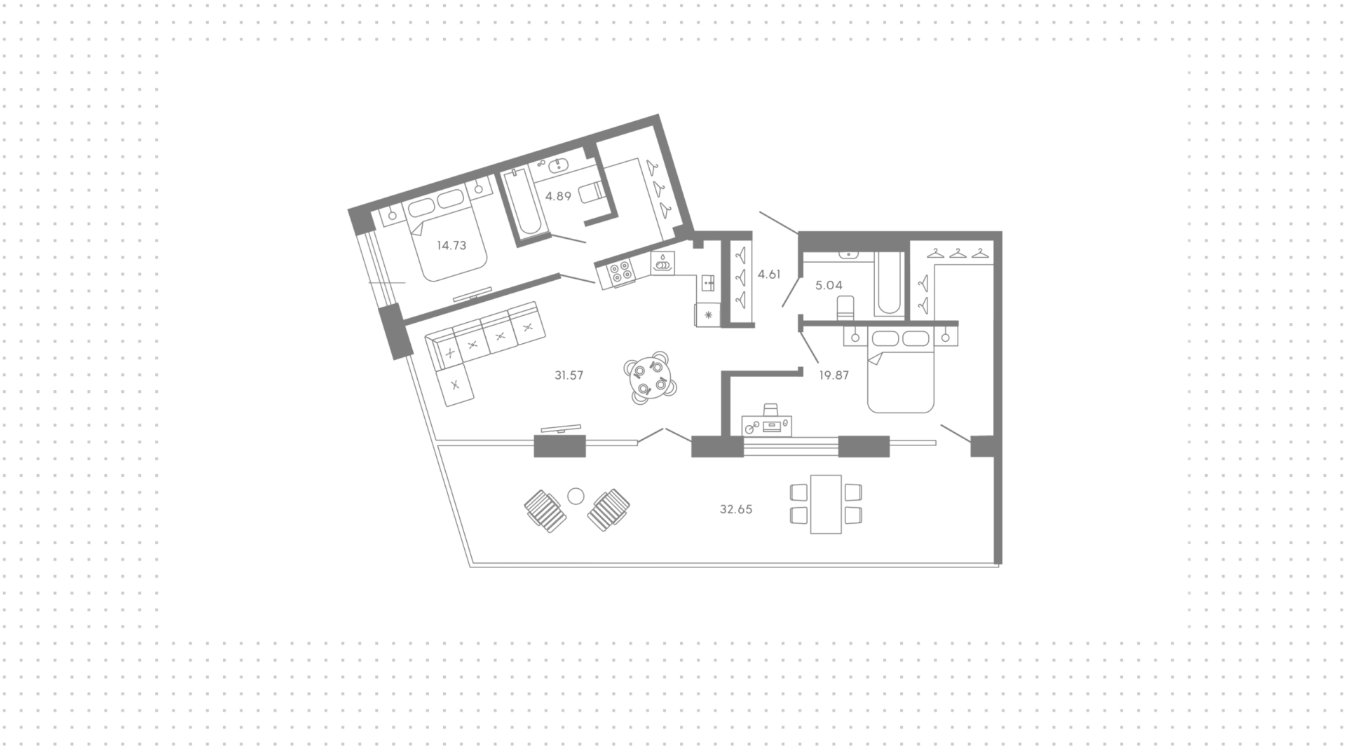 Квартиры c 2 спальнями, 113 м² в ЖК 17/33, 7 этаж