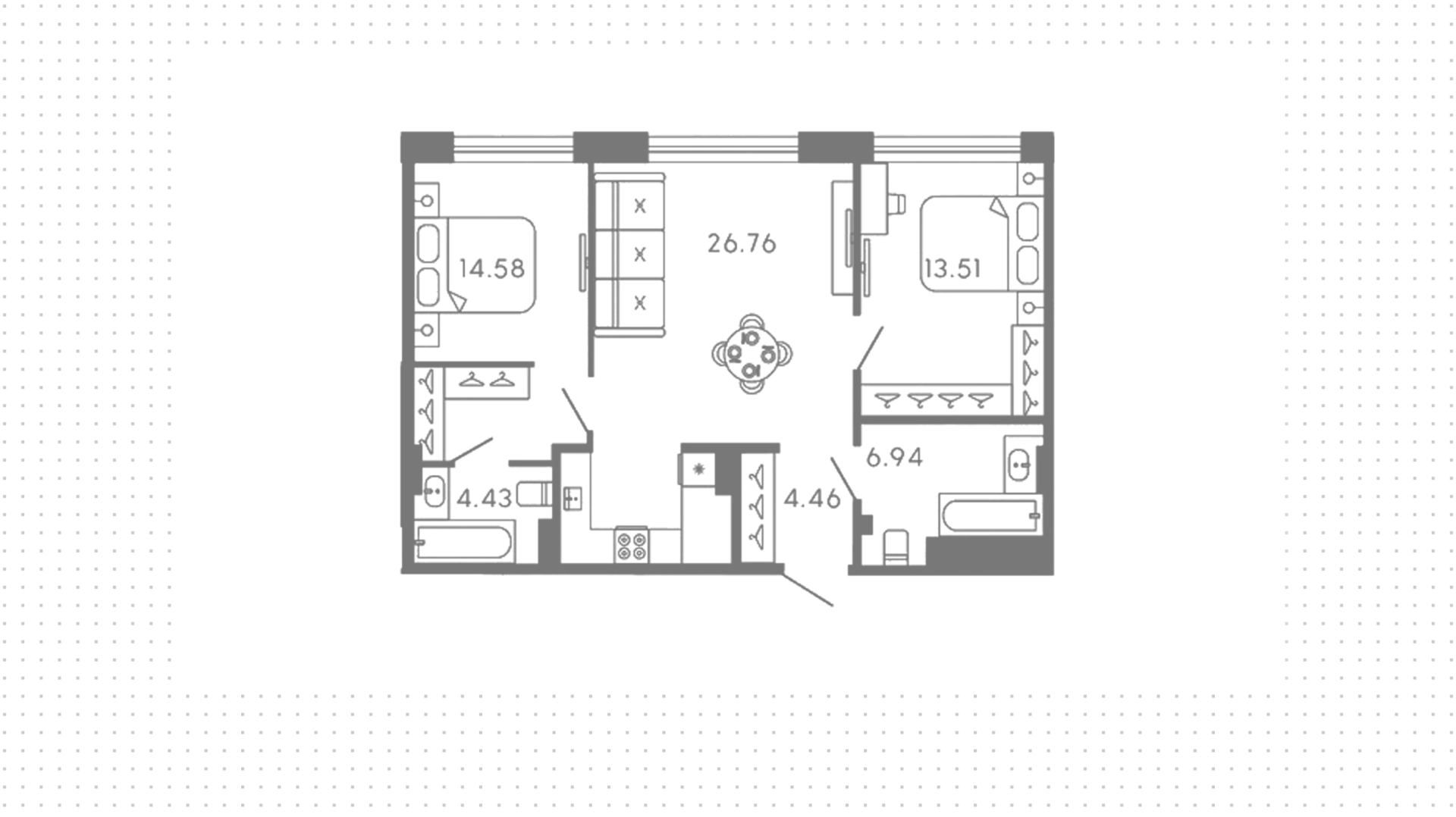 Квартиры c 2 спальнями, 70 м² в ЖК 17/33, 5 этаж