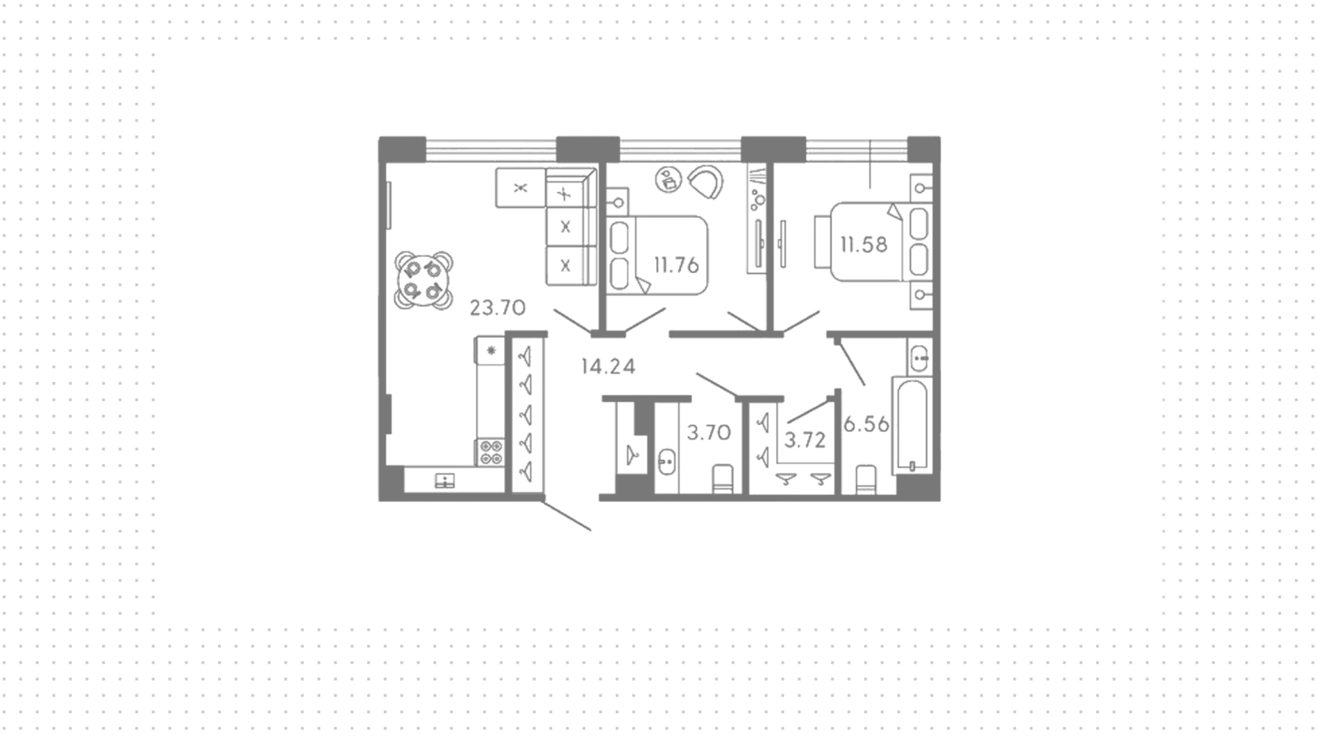 Квартиры c 2 спальнями, 75 м² в ЖК 17/33, 5 этаж