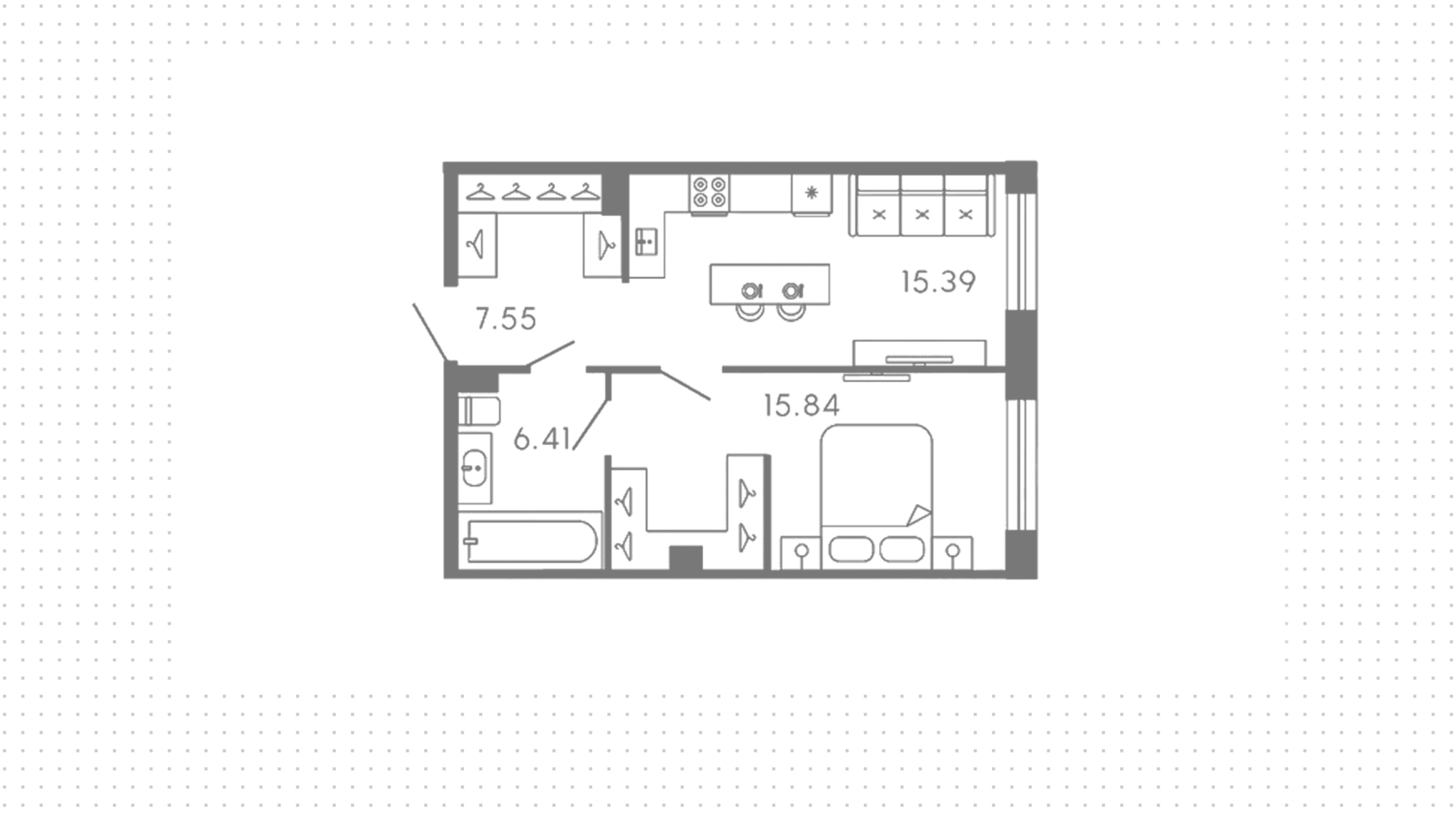 Квартиры c 1 спальней, 45 м² в ЖК 17/33, 5 этаж