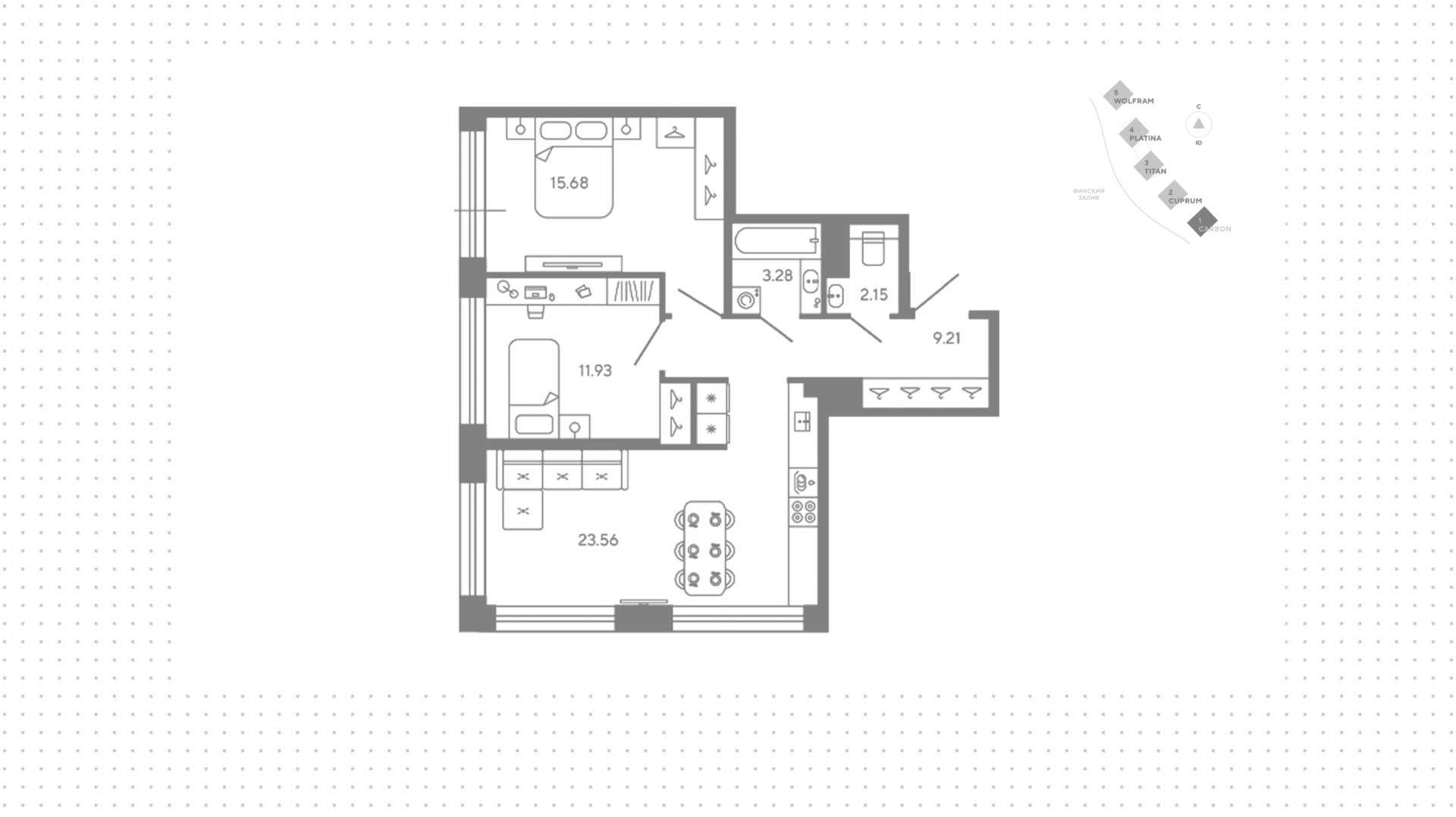 Площадь квартир в ЖК «Башни Элемент» составляет от 23 до 268 м², высота потолков – до 7 м.