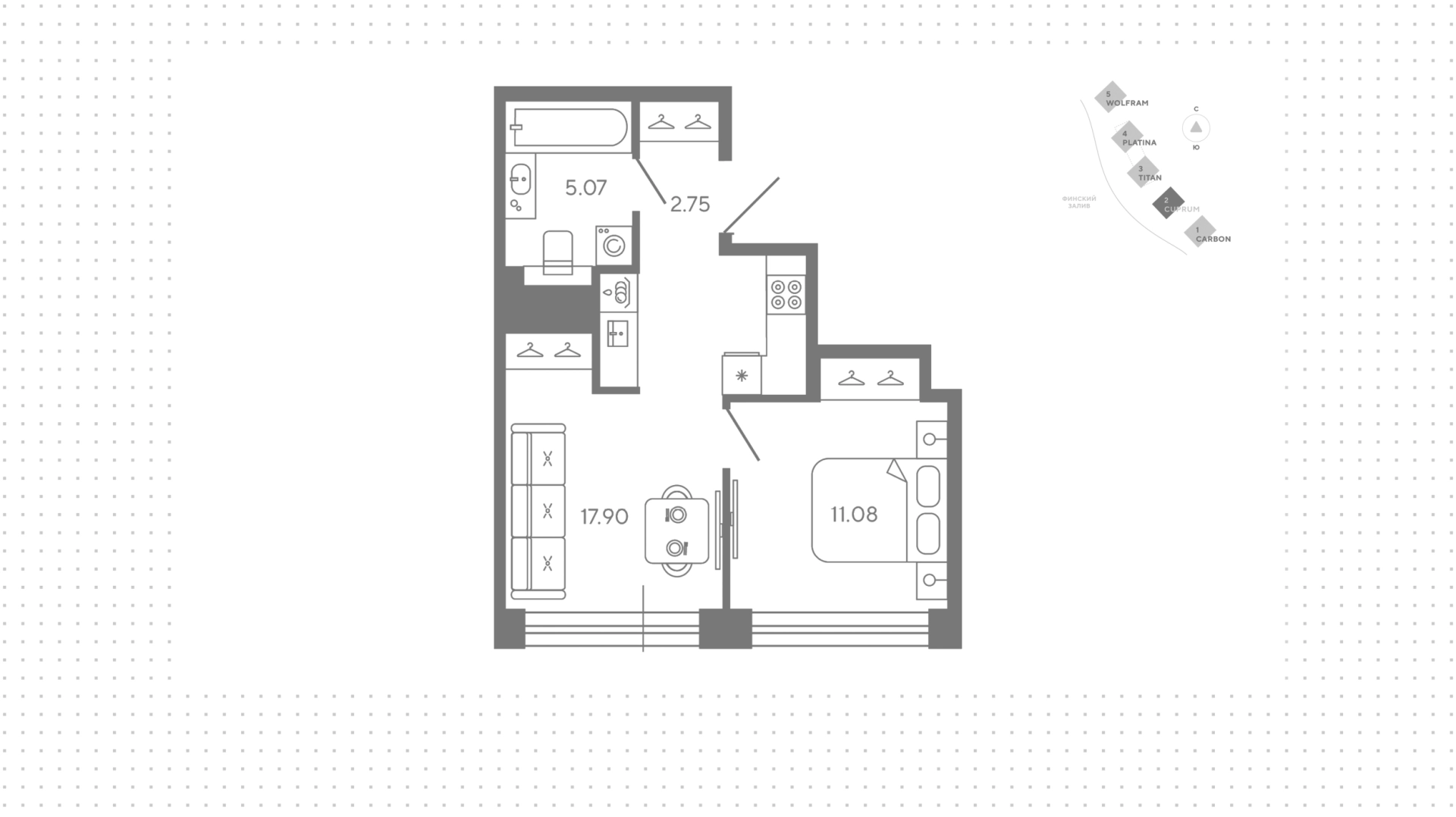Квартиры c 1 спальней, 36 м² в ЖК Bashni Element, 20 этаж
