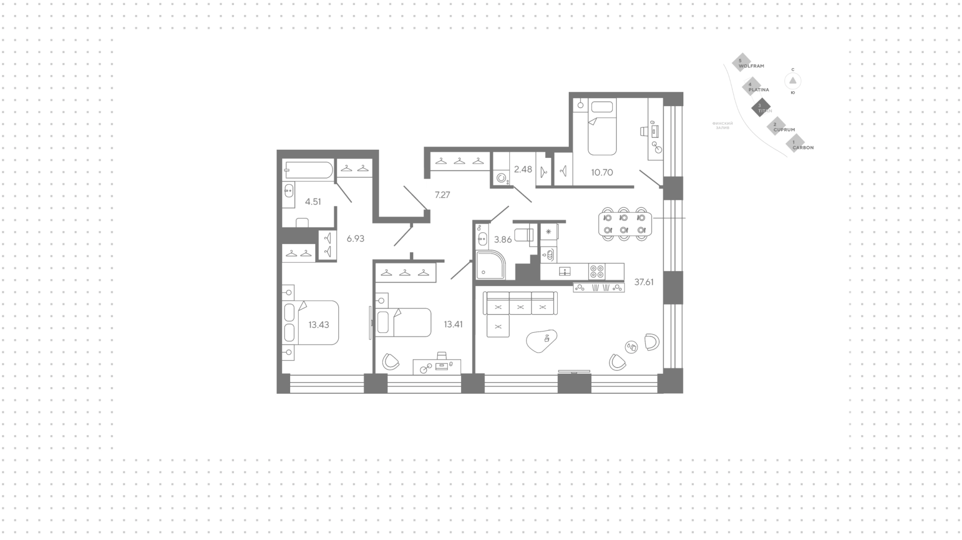 Площадь квартир в ЖК «Башни Элемент» составляет от 23 до 268 м², высота потолков – до 7 м.