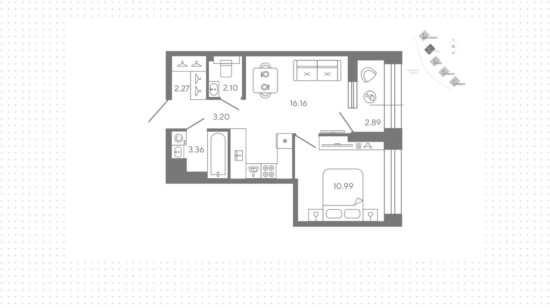 Квартиры c 1 спальней, 39 м² в ЖК Bashni Element, 15 этаж