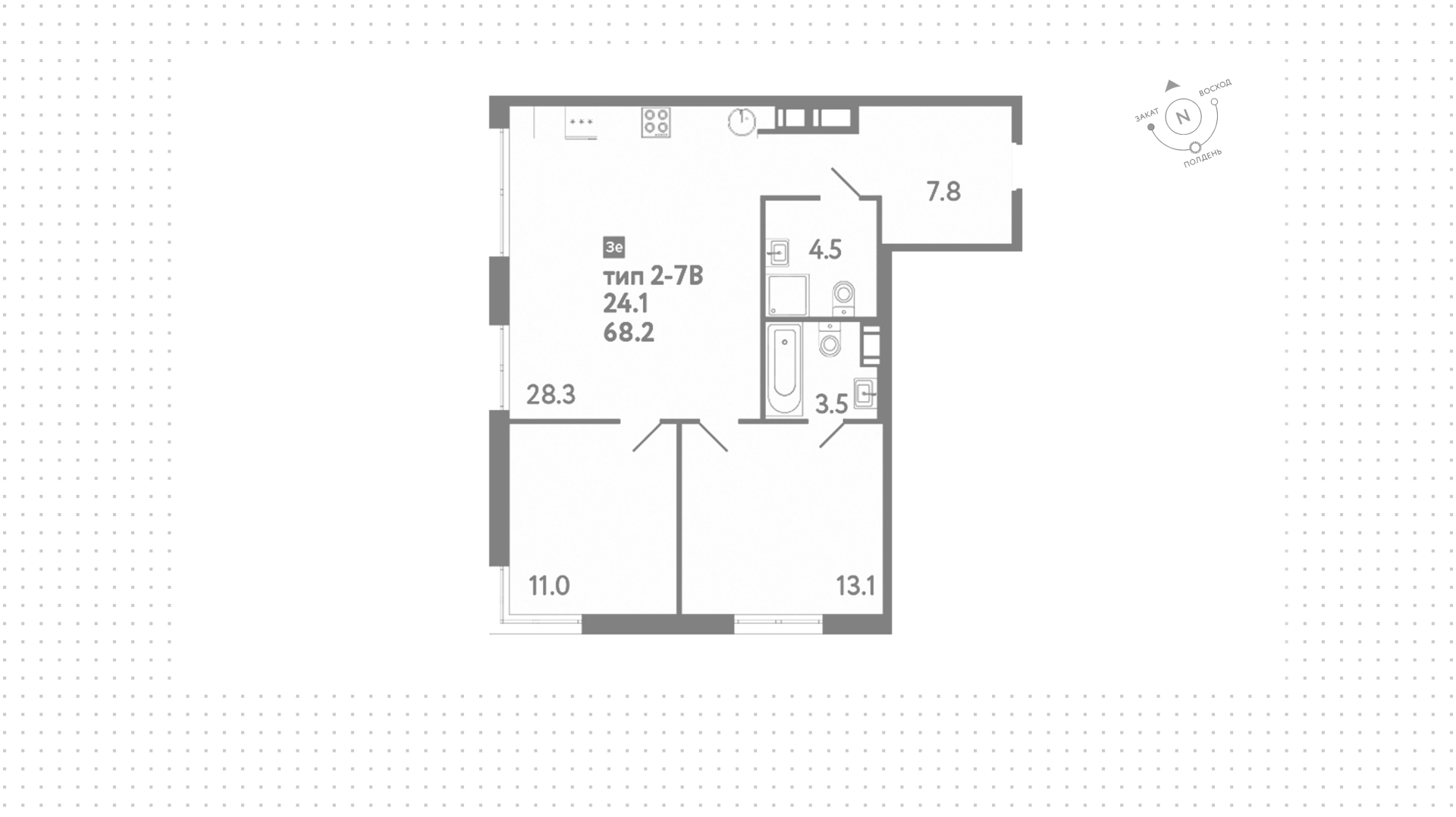 Квартиры c 2 спальнями, 68 м² в ЖК Струны, 12 этаж