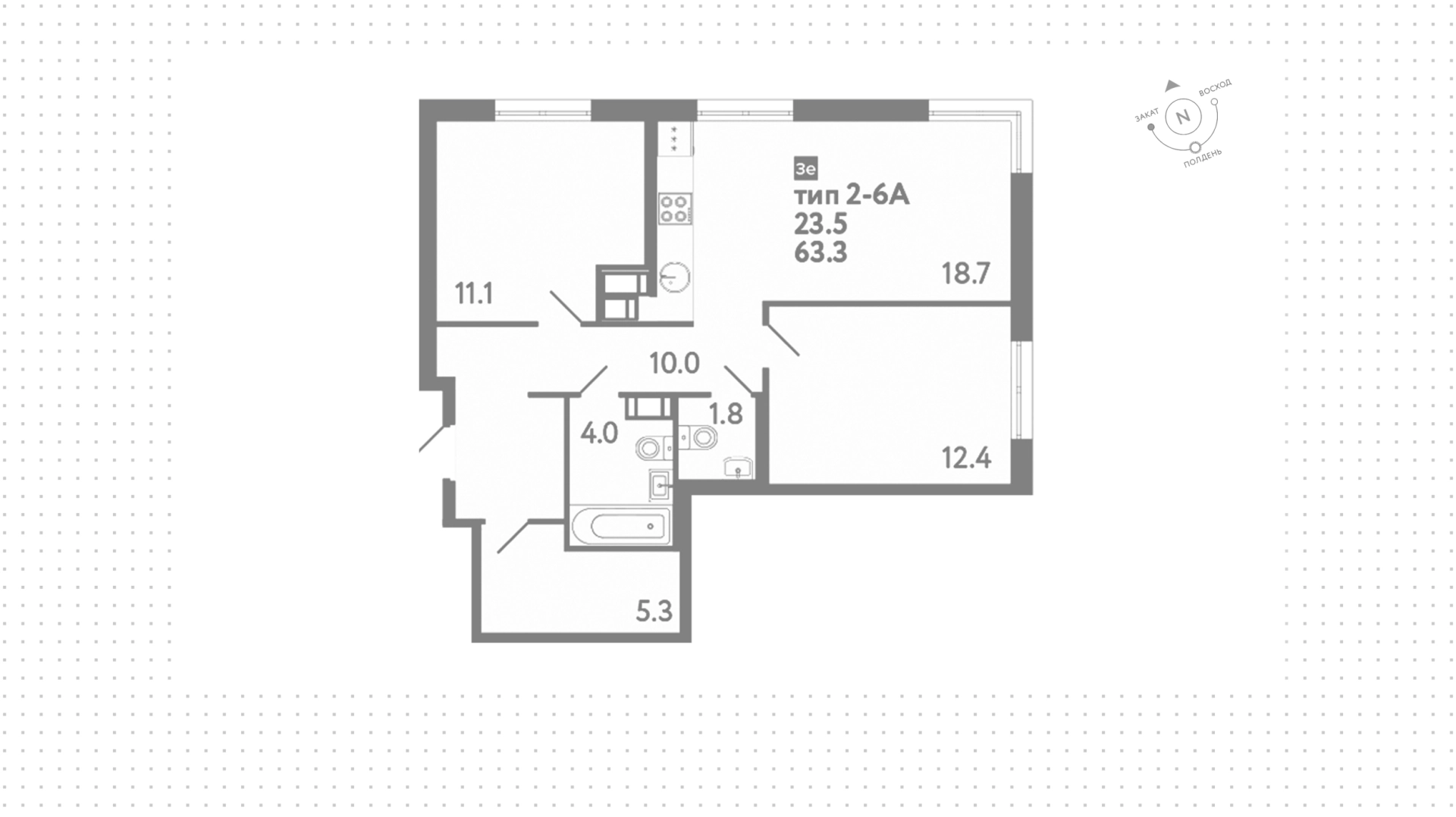 Квартира с 2 спальнями, 63 м²