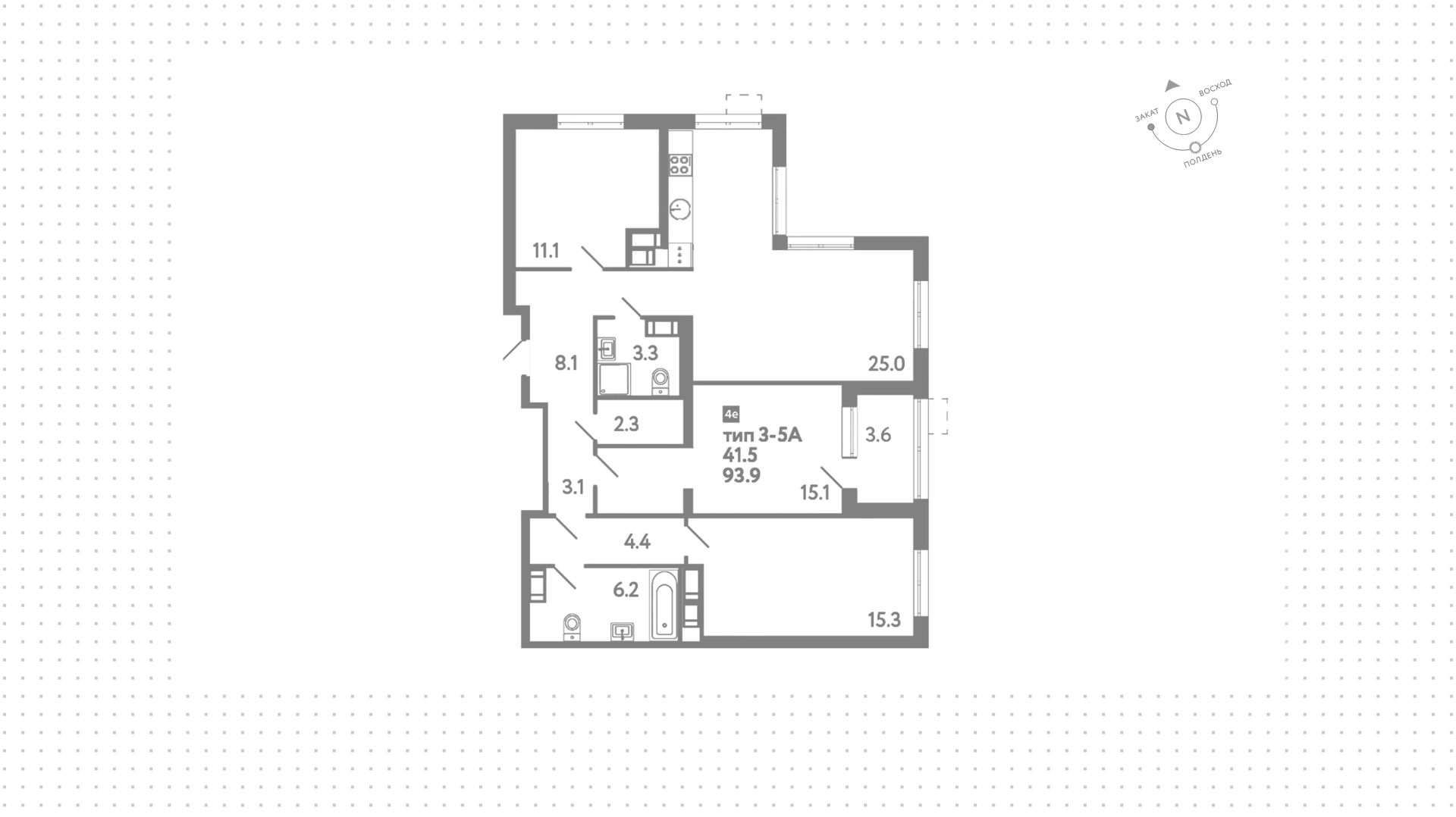 Квартиры c 3 спальнями, 93 м² в ЖК Струны, 23 этаж