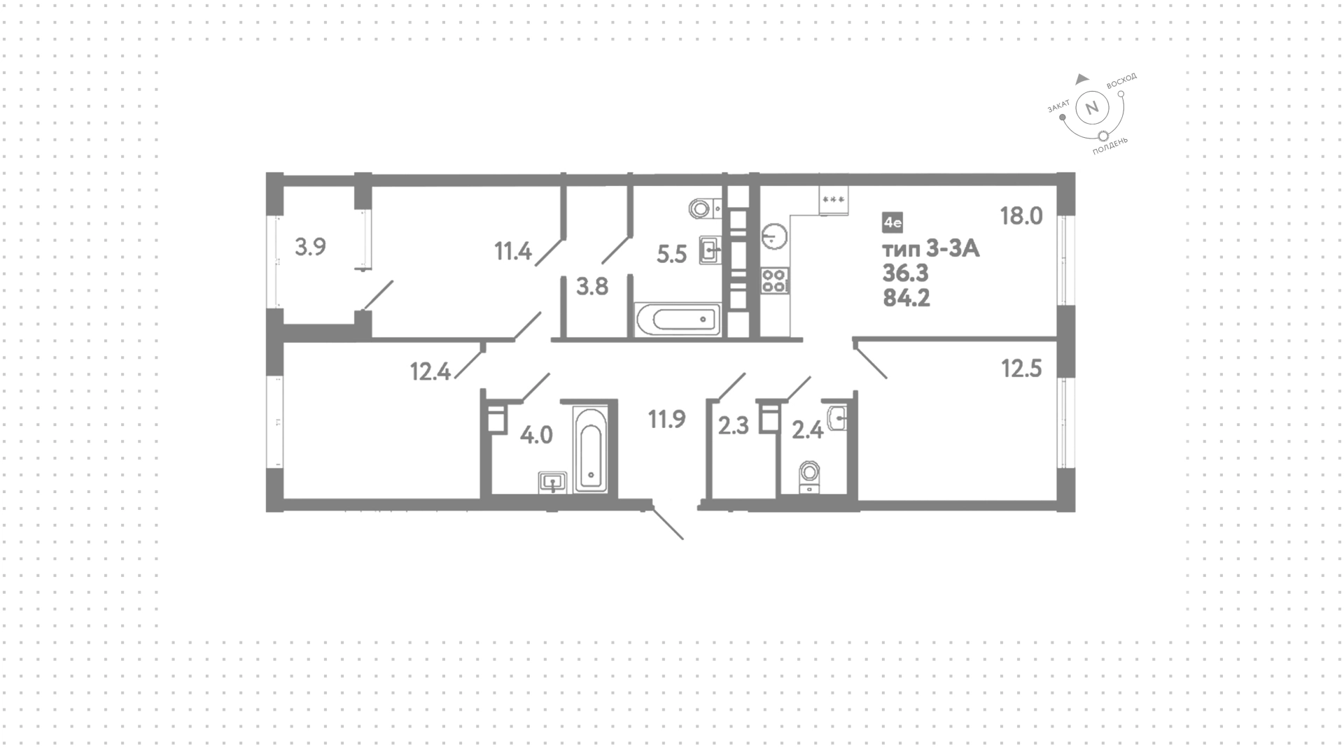 Квартиры c 3 спальнями, 84 м² в ЖК Струны, 4 этаж