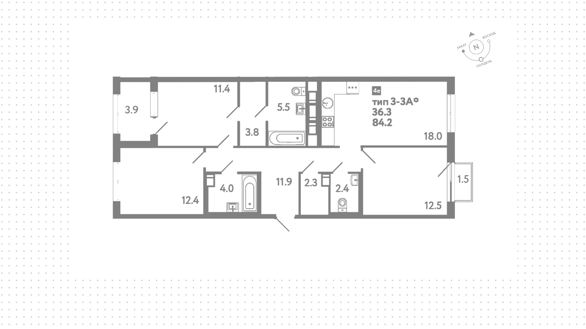 Квартиры c 3 спальнями, 84 м² в ЖК Струны, 9 этаж