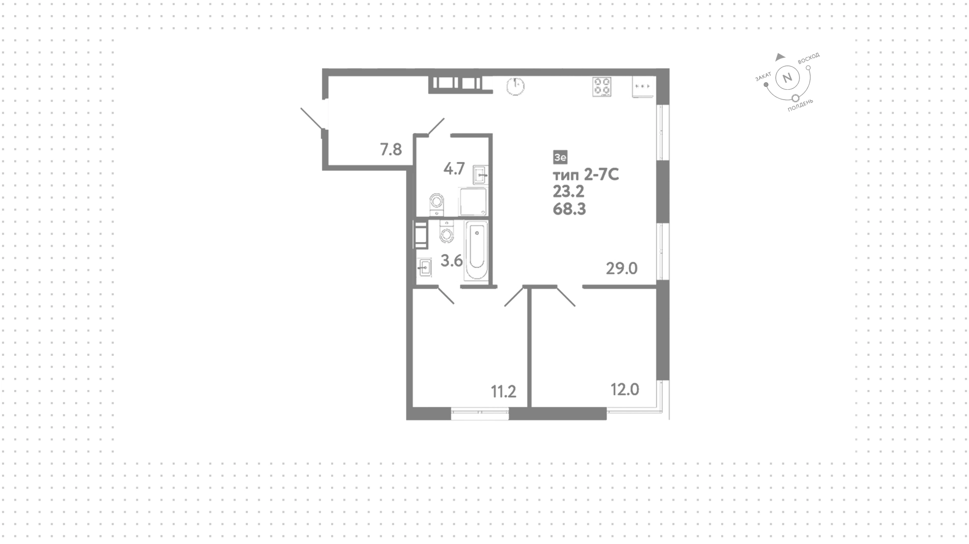 Квартиры c 2 спальнями, 68 м² в ЖК Струны, 9 этаж