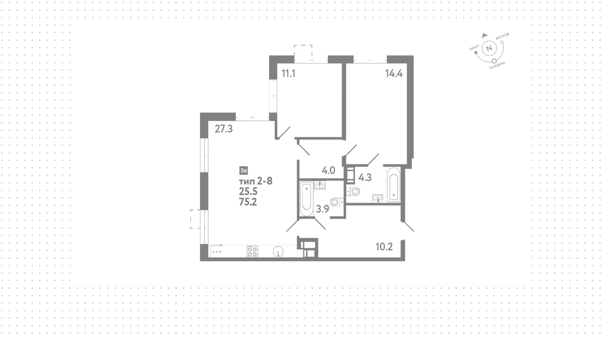 Квартиры c 2 спальнями, 75 м² в ЖК Струны, 23 этаж