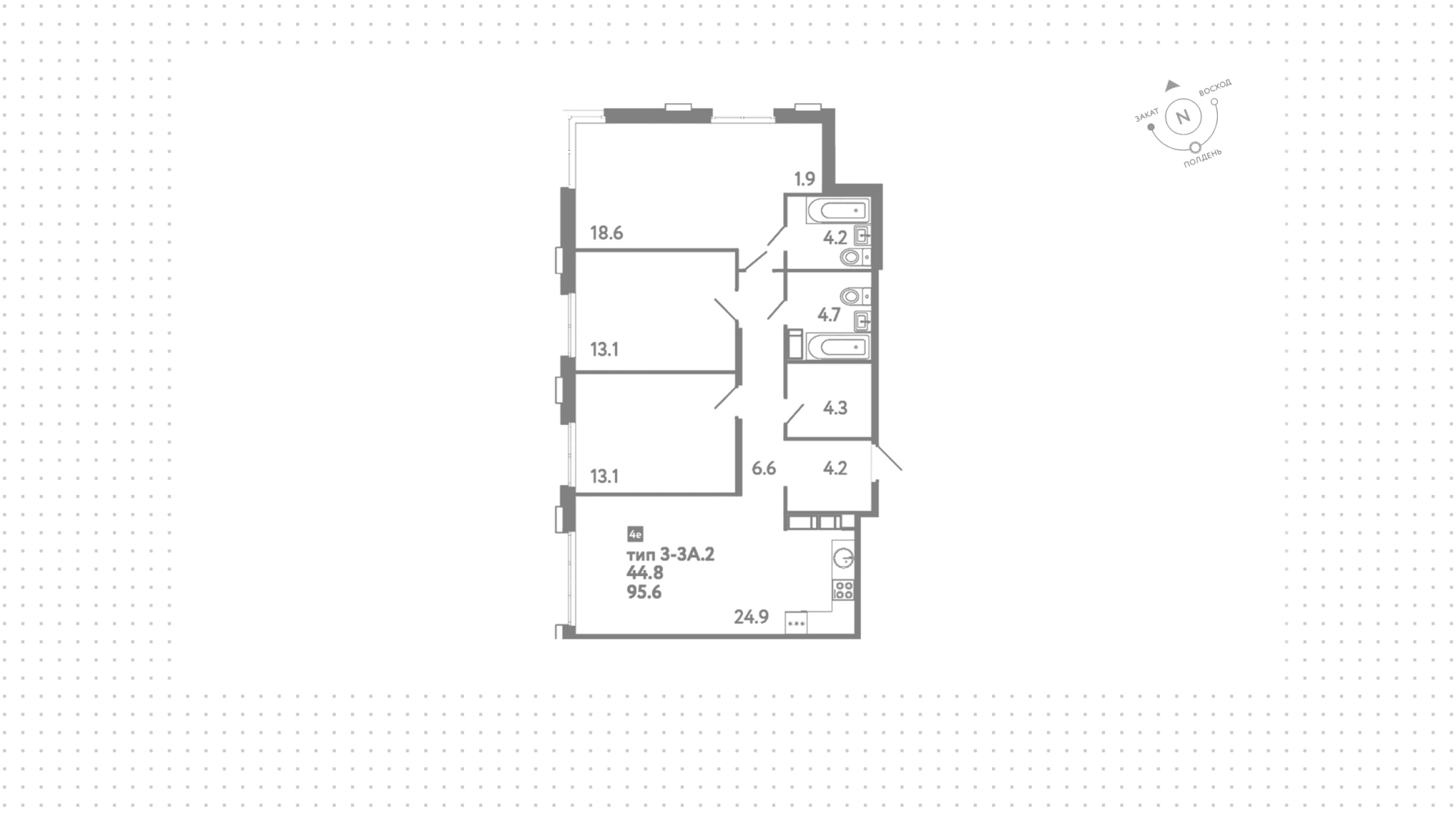 Квартиры c 3 спальнями, 95 м² в ЖК Струны, 20 этаж