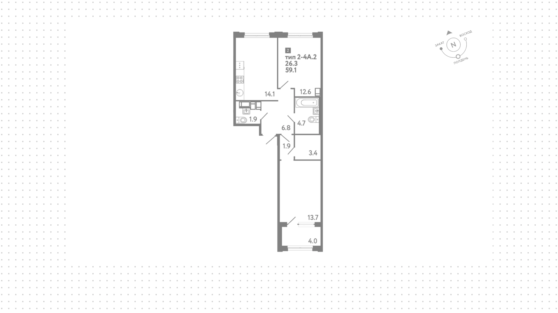 Квартиры c 2 спальнями, 59 м² в ЖК Струны, 5 этаж
