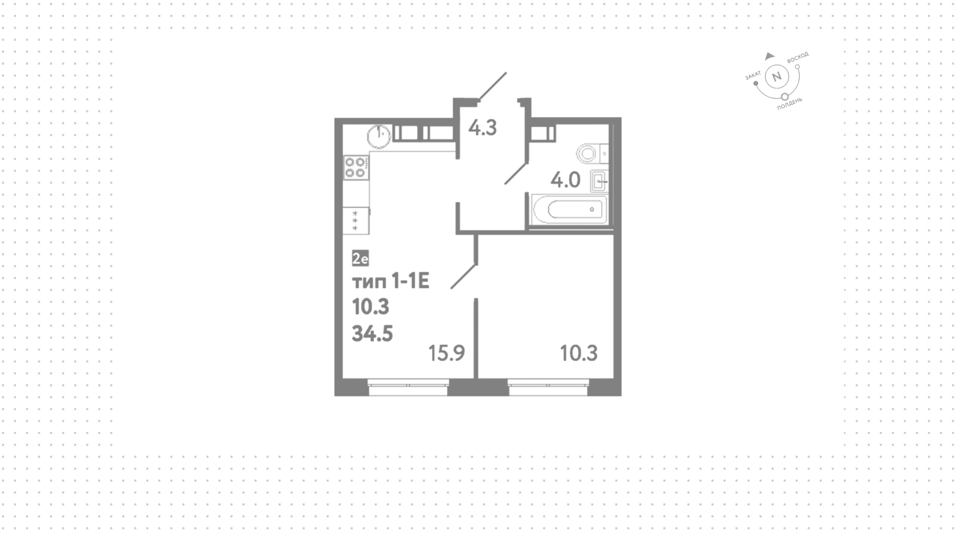 Квартиры c 1 спальней, 34 м² в ЖК Струны, 9 этаж