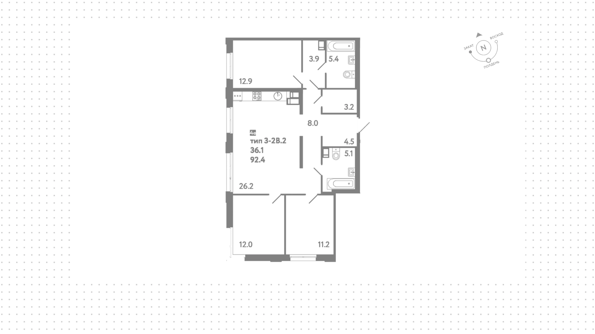 Квартиры c 3 спальнями, 92 м² в ЖК Струны, 9 этаж
