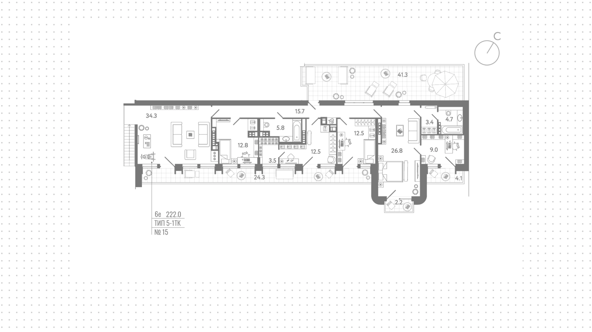 Квартиры c 5 спальнями, 222 м² в ЖК Коллекционер, 6 этаж