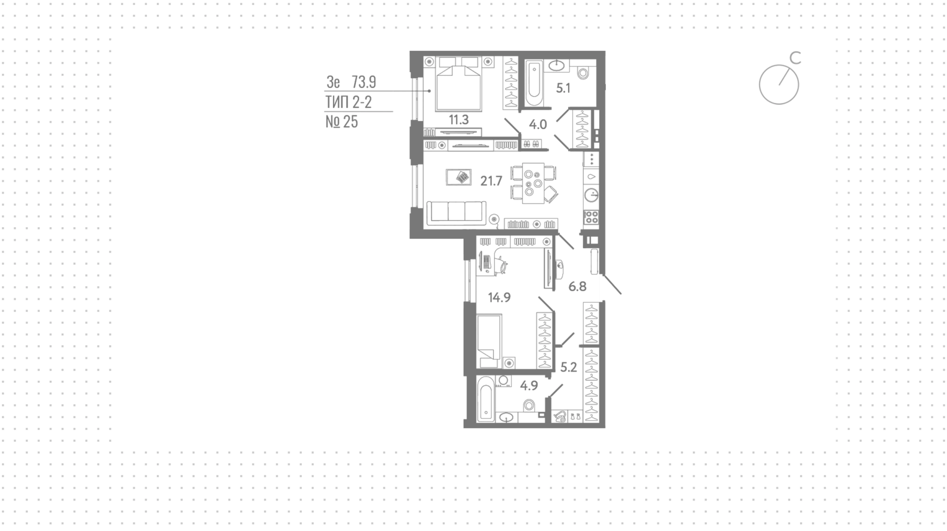 Квартиры c 2 спальнями, 73 м² в ЖК Коллекционер, 4 этаж