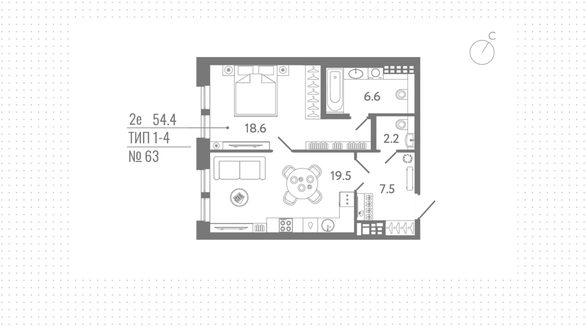 Квартиры c 1 спальней, 54 м² в ЖК Коллекционер, 7 этаж