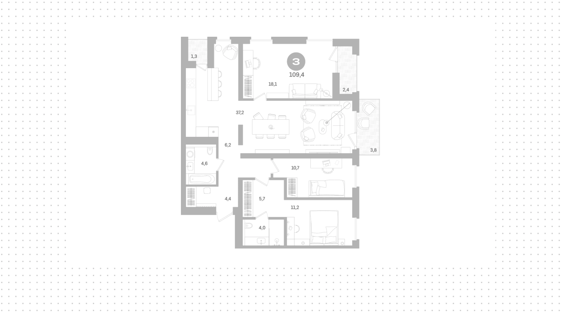 Квартиры c 3 спальнями, 109 м² в ЖК Северный ветер, 4 этаж