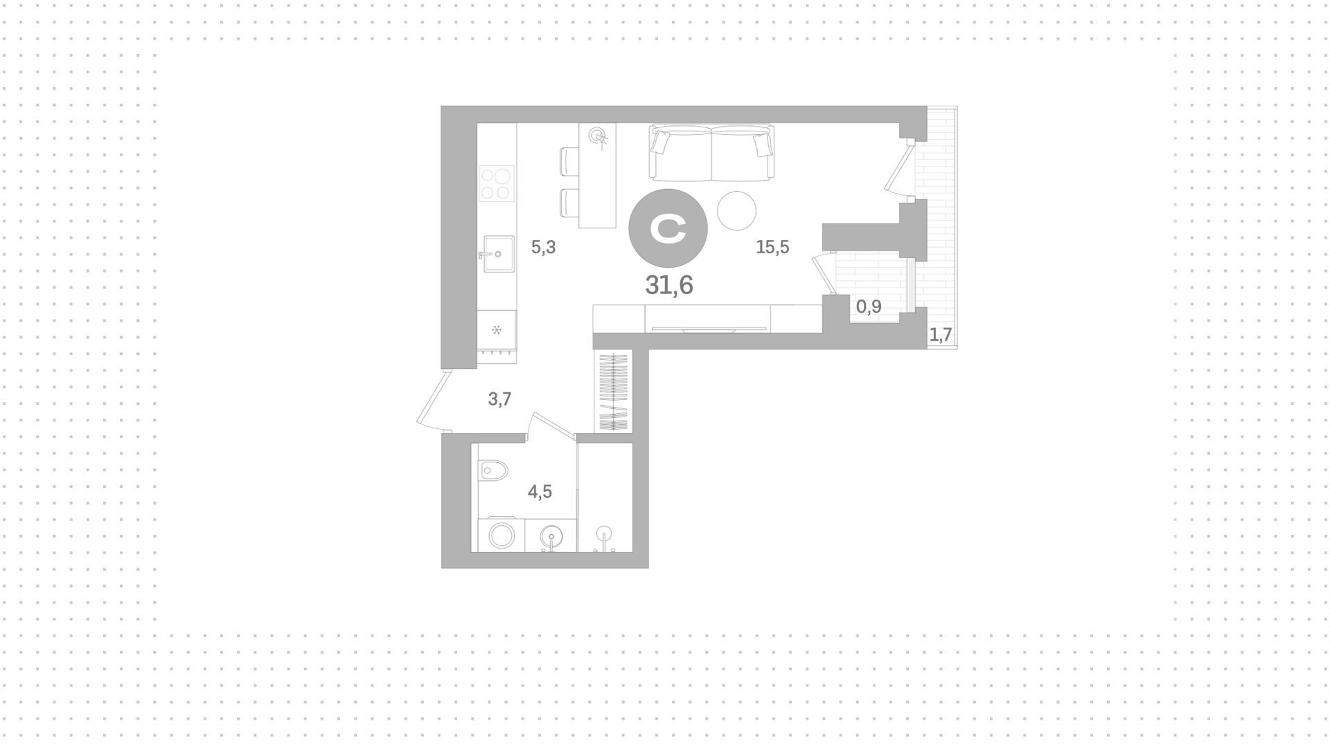 Квартиры, 31 м² в ЖК Северный ветер, 2 этаж
