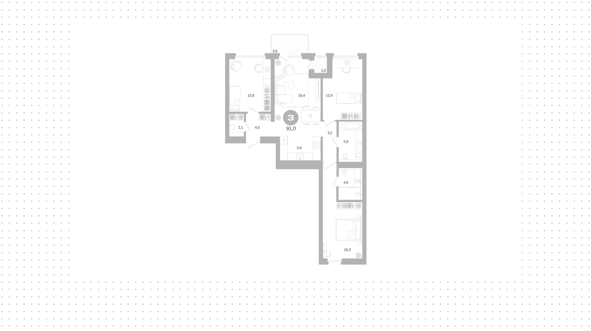 Квартиры c 3 спальнями, 91 м² в ЖК Северный ветер, 5 этаж
