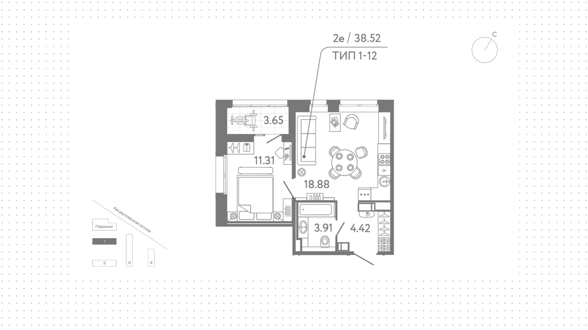 Квартиры c 1 спальней, 38 м² в ЖК Ultra City 3.0, 14 этаж