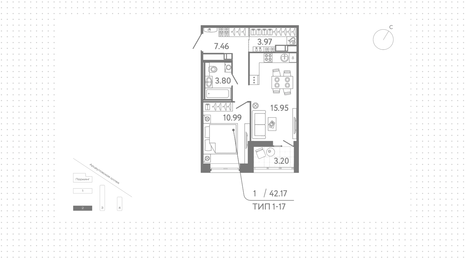 Квартиры c 1 спальней, 42 м² в ЖК Ultra City 3.0, 11 этаж