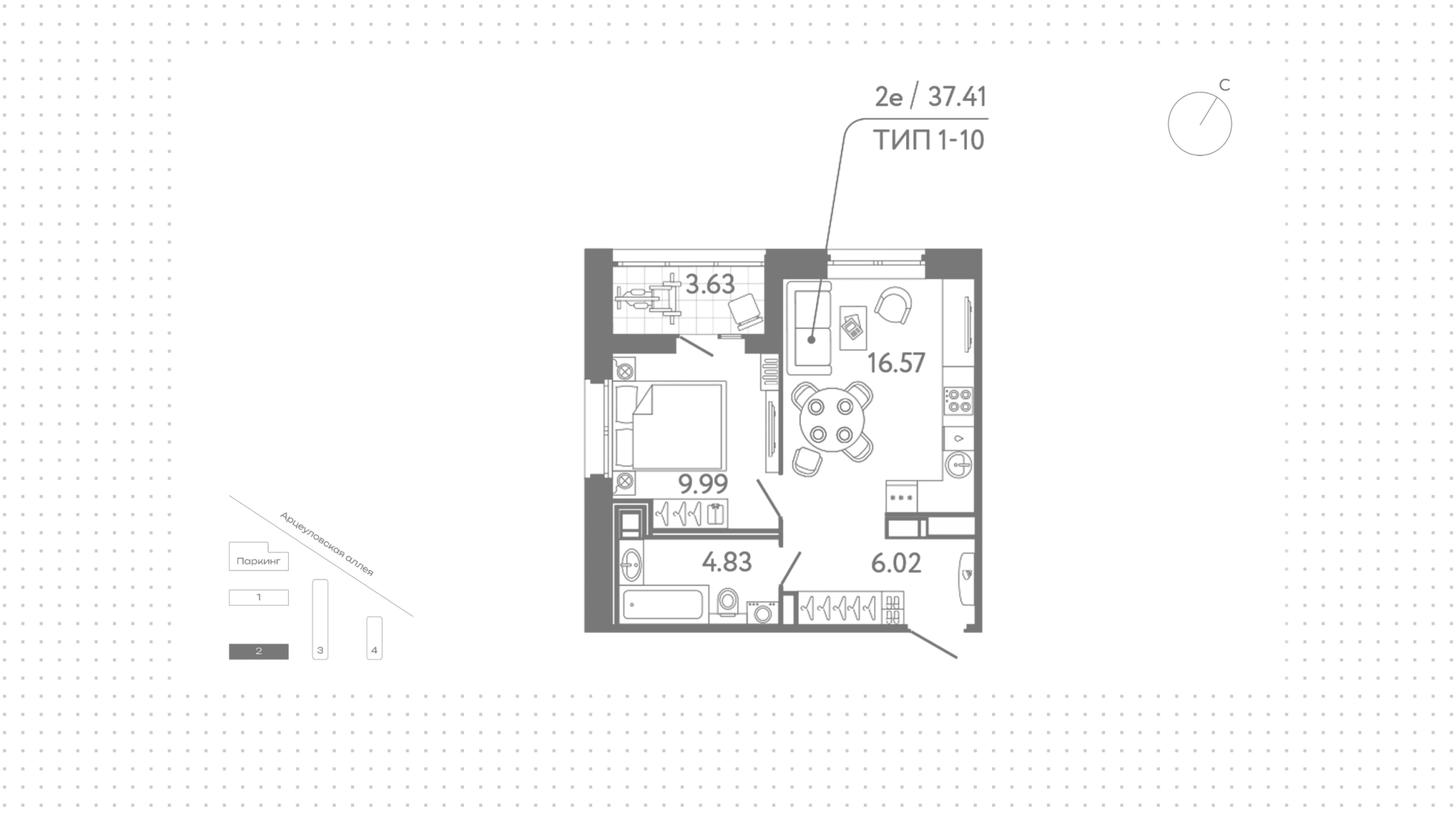 Квартиры c 1 спальней, 37 м² в ЖК Ultra City 3.0, 16 этаж