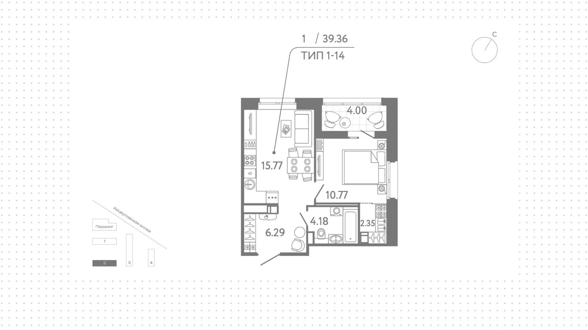 Квартиры c 1 спальней, 39 м² в ЖК Ultra City 3.0, 15 этаж