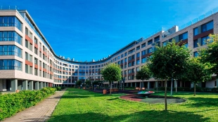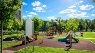 На территории оборудованы спортивные и детские площадки, зоны отдыха и обогреваемые беседки, разбит фруктовый сад. На первом этаже второго корпуса открыта детская поликлиника.