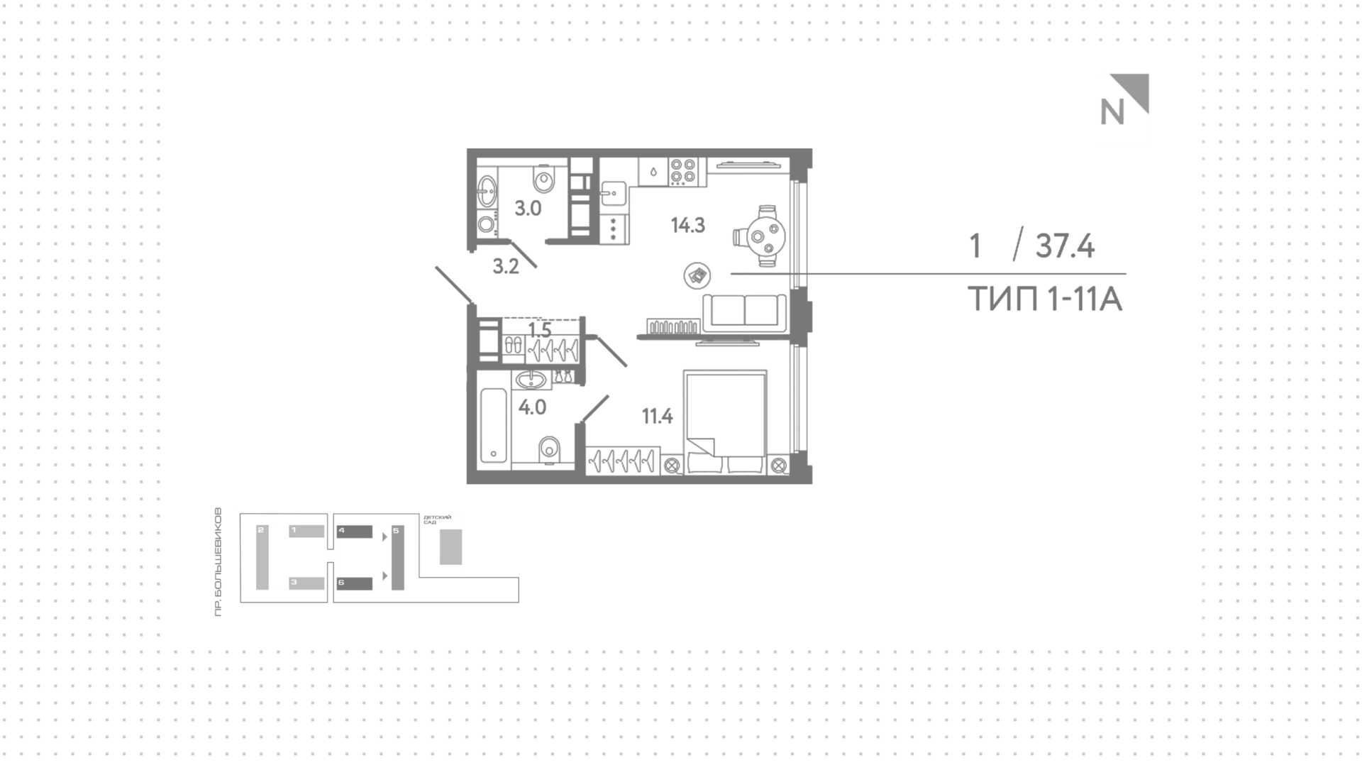Квартиры c 1 спальней, 36 м² в ЖК Гений, 10 этаж
