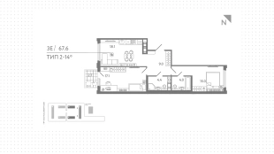 Квартиры c 2 спальнями, 67 м² в ЖК Гений, 13 этаж