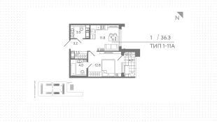 Квартиры c 1 спальней, 36 м² в ЖК Гений, 18 этаж
