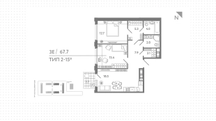 Квартиры c 2 спальнями, 67 м² в ЖК Гений, 7 этаж