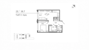 Квартиры c 1 спальней, 39 м² в ЖК Гений, 13 этаж