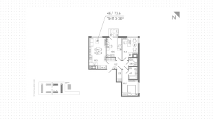 Квартиры c 3 спальнями, 73 м² в ЖК Гений, 16 этаж