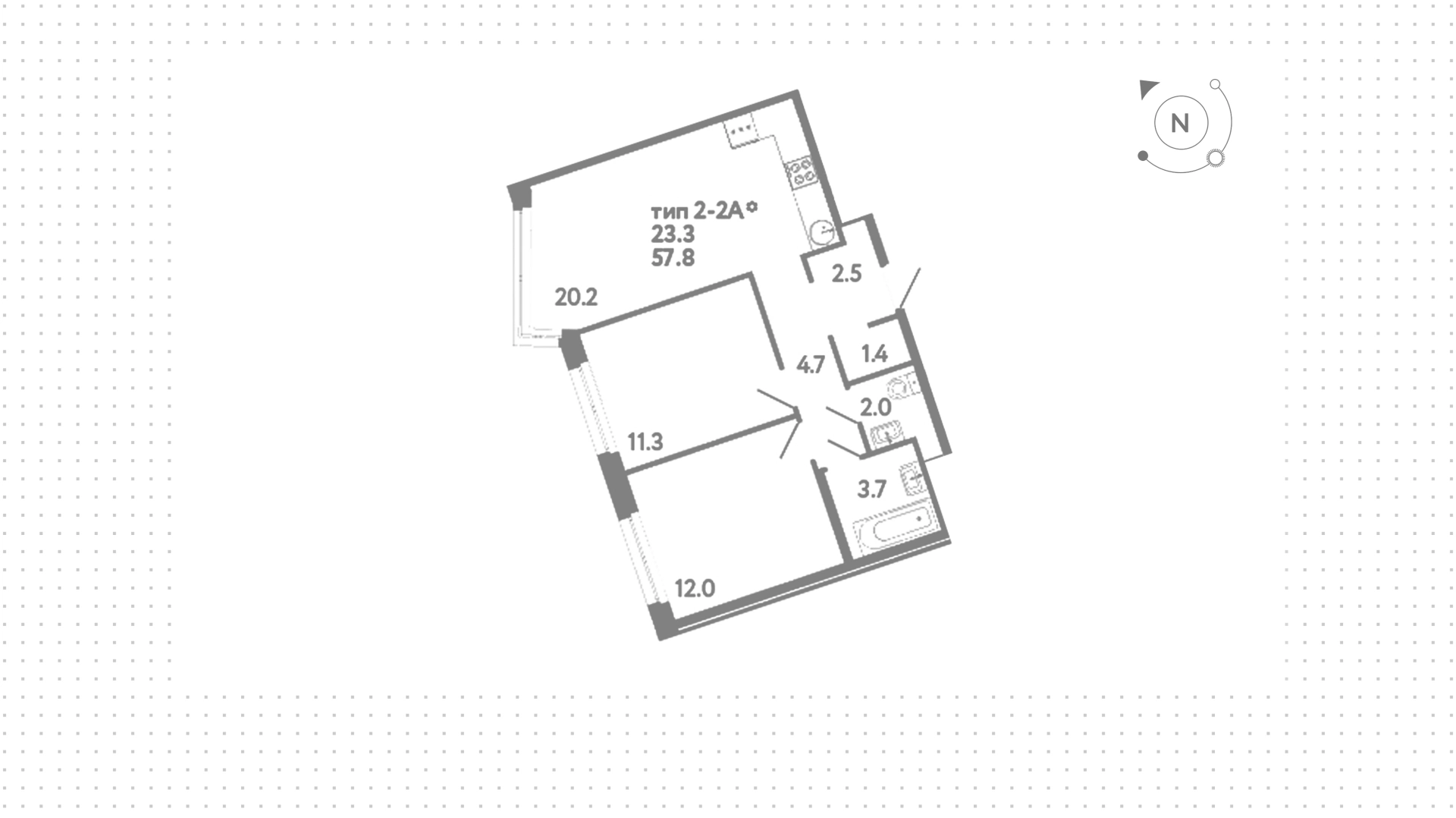 Квартира с 2 спальнями, 57 м²