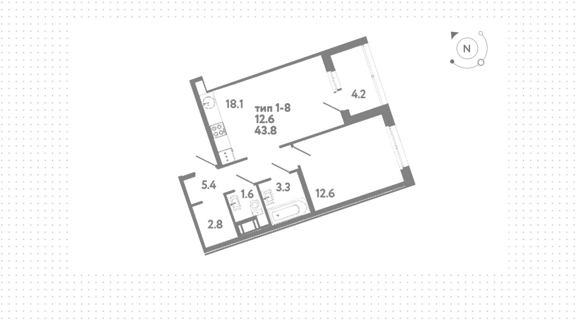 Квартиры c 1 спальней, 43 м² в ЖК Литера, 8 этаж