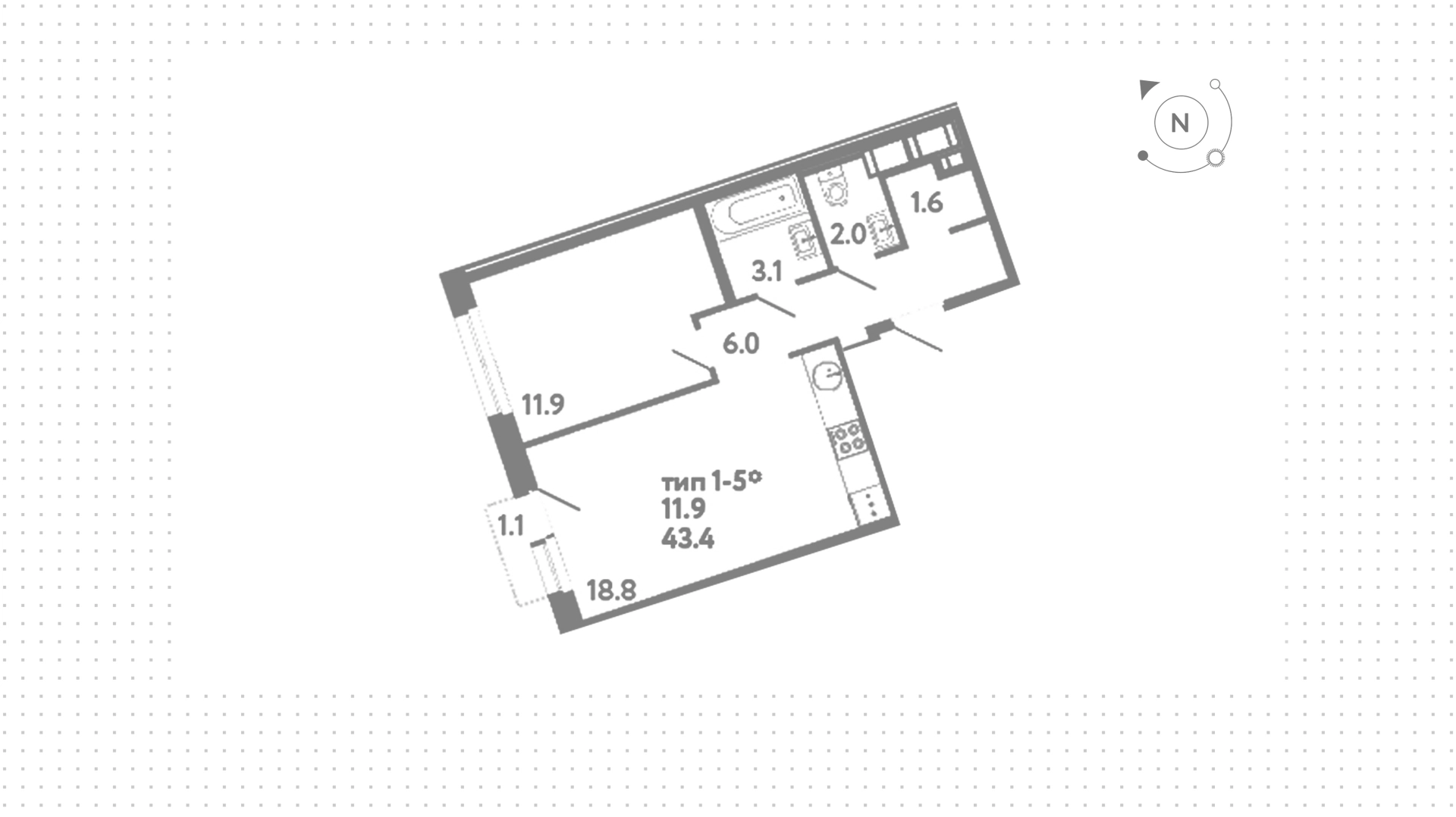 Квартиры c 1 спальней, 43 м² в ЖК Литера, 7 этаж