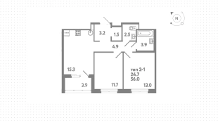 Квартиры c 2 спальнями, 56 м² в ЖК Литера, 9 этаж