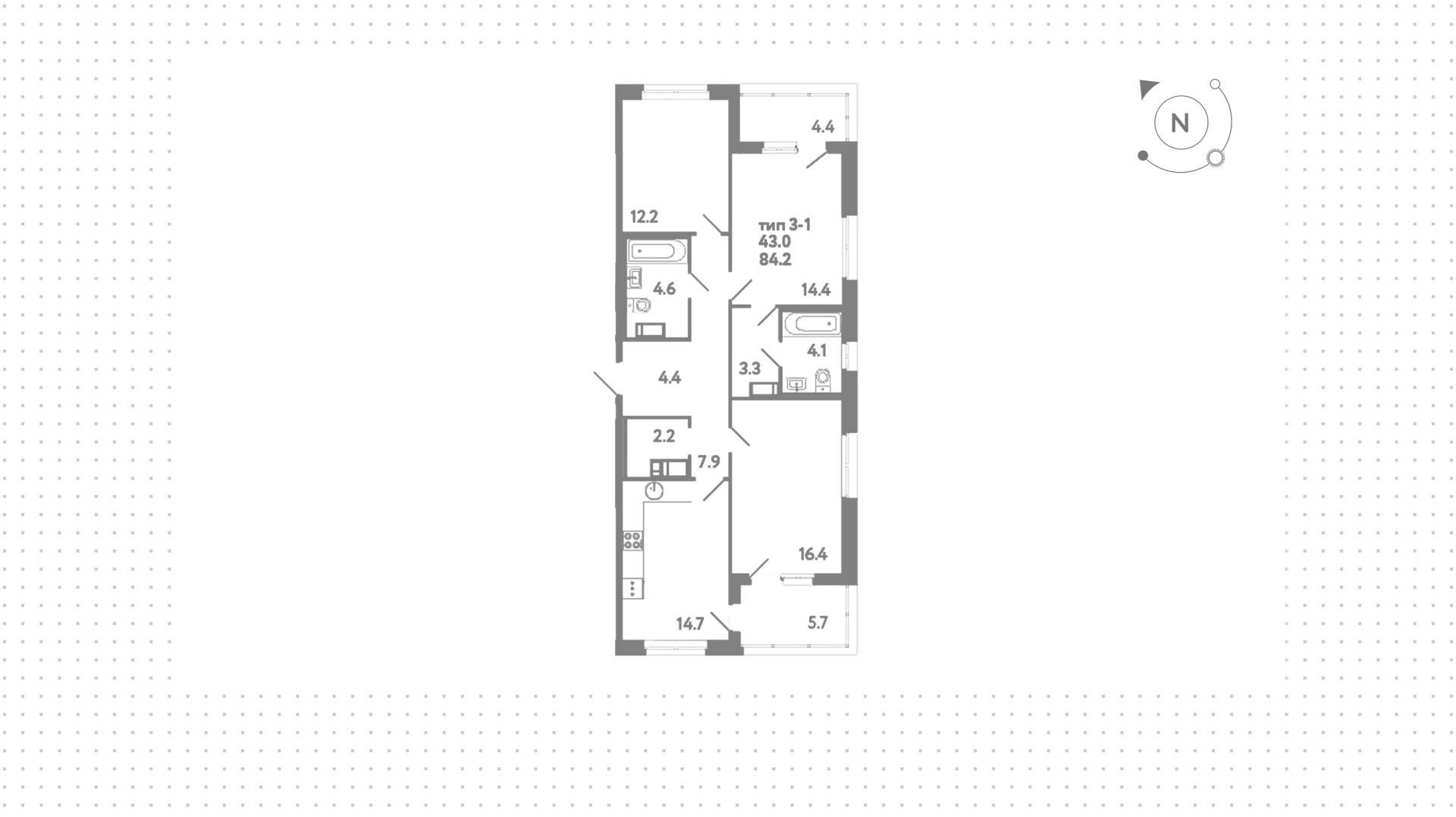 Квартиры c 3 спальнями, 84 м² в ЖК Литера, 10 этаж