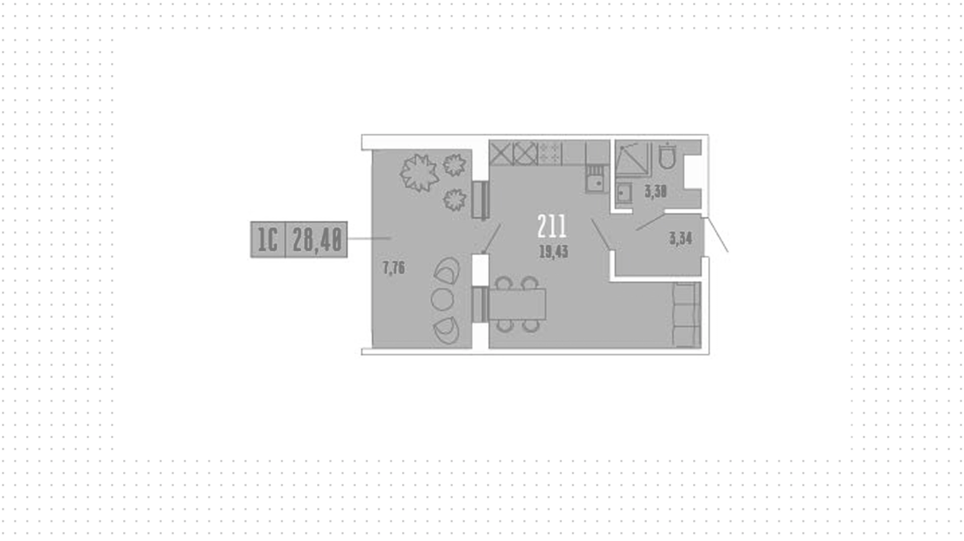 Студия, 28 м²